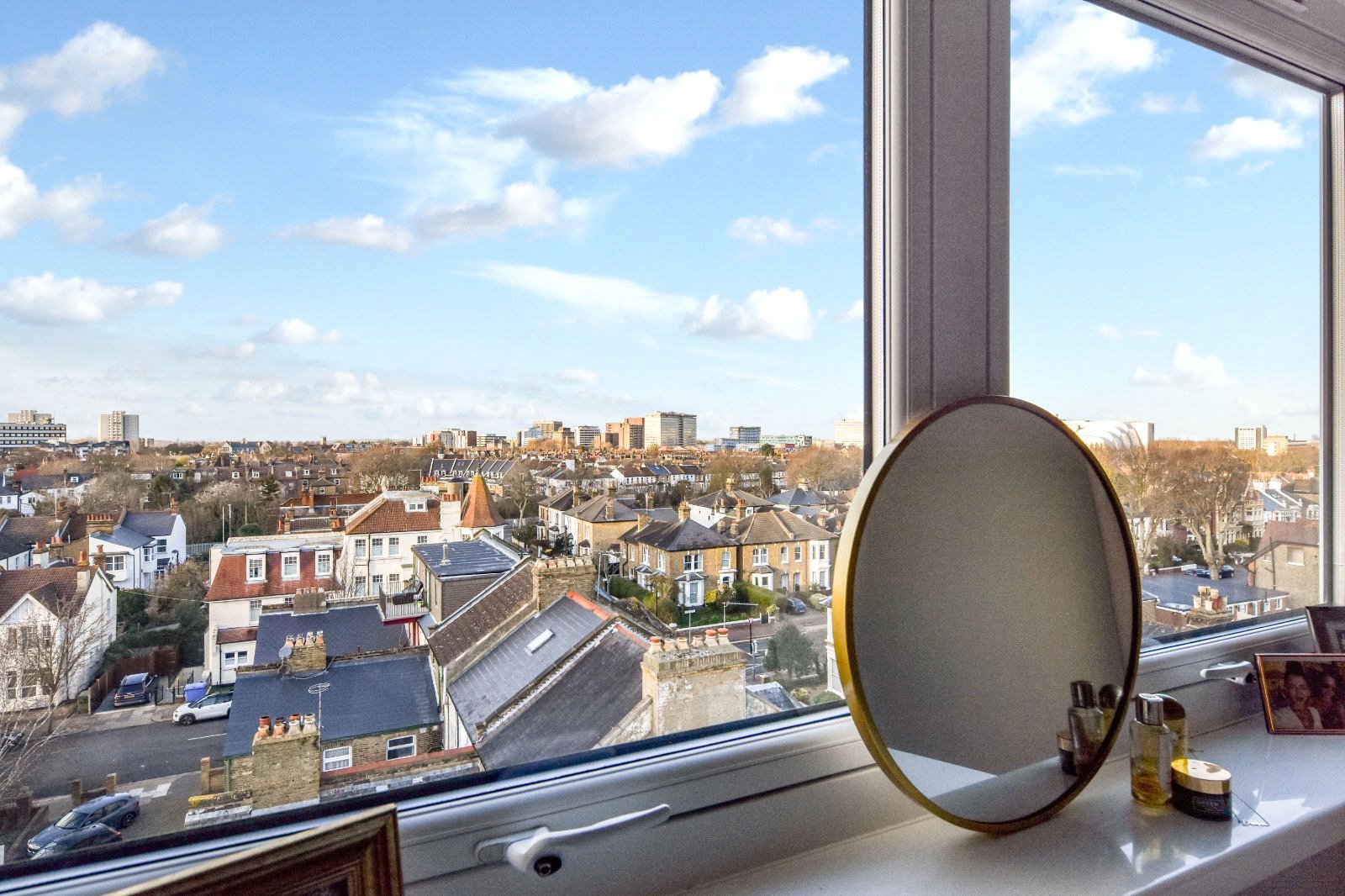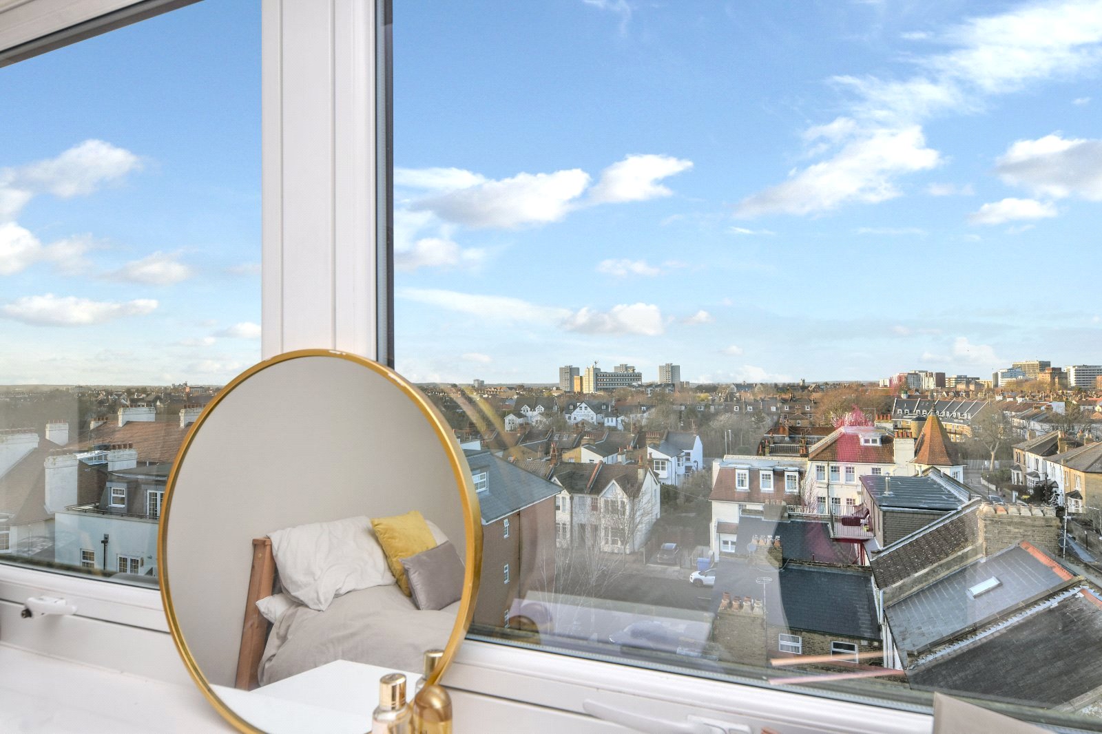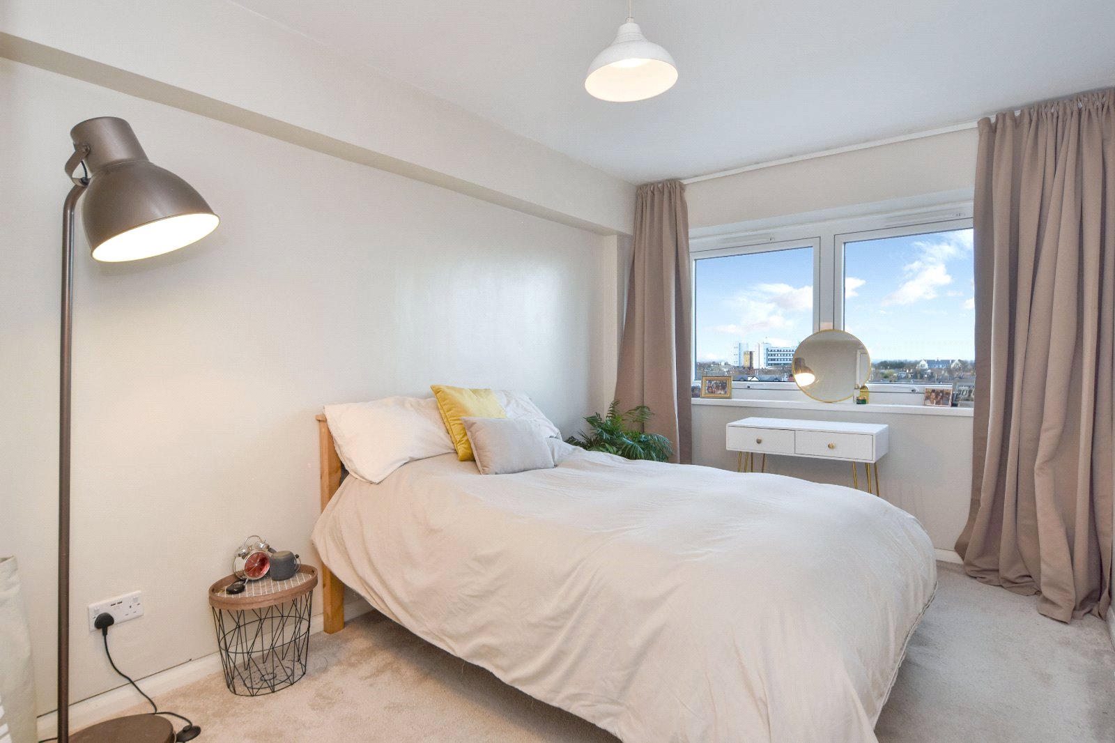 Generous size uPVC double glazed square bay window affording outstanding views towards Southend and Shoeburyness with large window seating area. Feature multi pane mirrors to one aspect. Wall light points. Wall mounted electric heater. Smooth plastered ceiling.