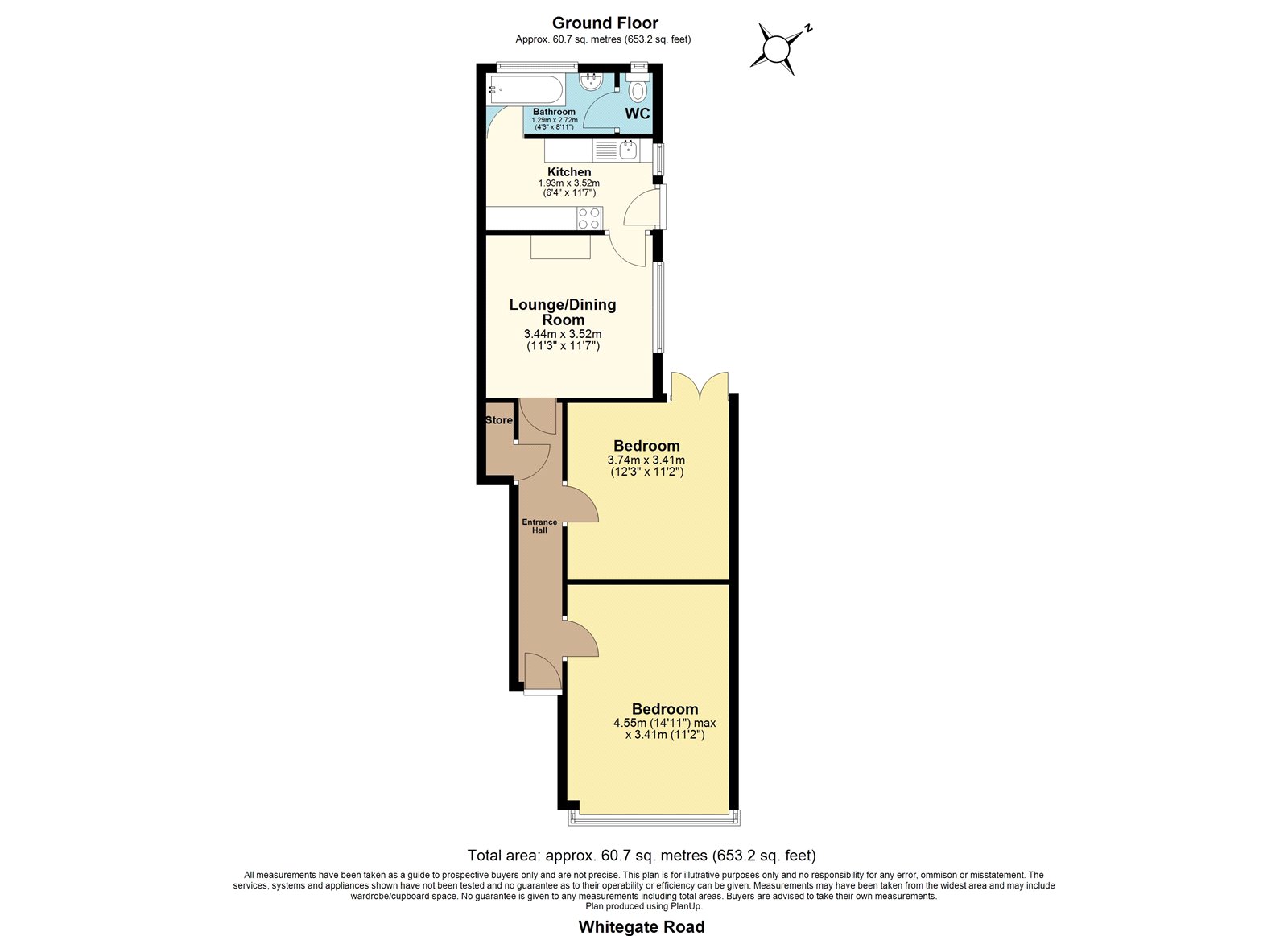 Two box sash windows to side. Wall mounted radiator. Feature York stone fireplace with wooden mantle. Wood effect laminate flooring. High level skirting. Door to rear provides access to the: