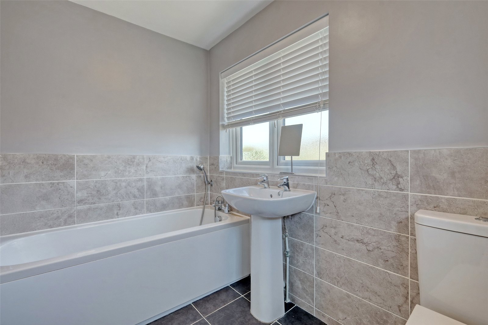 Obscure double glazed windows to rear and side. The bathroom is fitted with a three piece suite comprising of panel enclosed bath with mixer tap and shower attachment, pedestal wash basin and close coupled WC. Heated towel rail. Part tiling to walls. Tiled floor and smooth plastered ceiling.