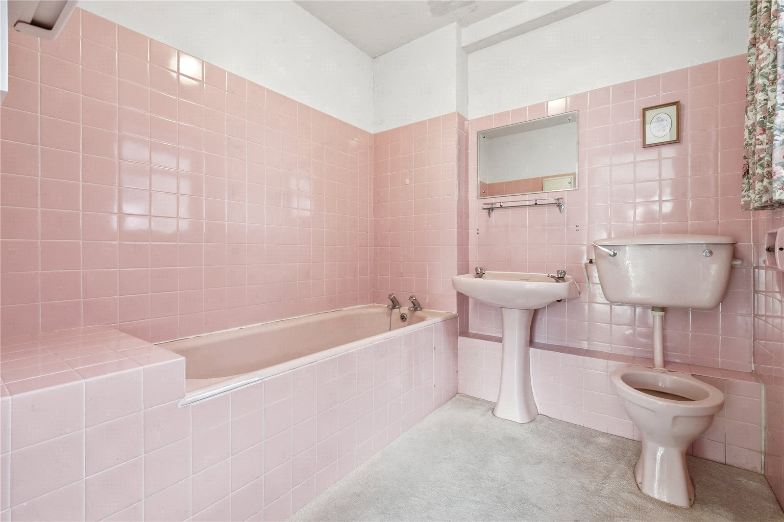 UPVC double obscure glazed window to side. Fitted with a three piece suite comprising low flush WC, pedestal wash basin and panelled bath. Wall mounted radiator. Part tiled walls. Electric shaver charging point. Smooth plastered ceiling.