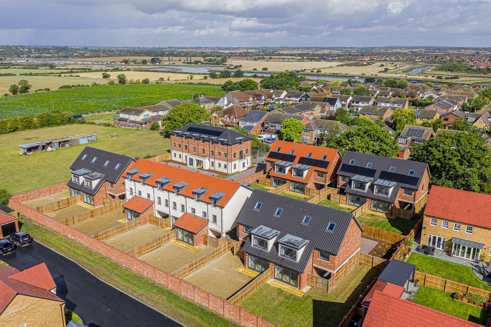 Stylish mid-terrace four-bedroom townhouse offering 1647spft of living space, in a boutique mews-style development, featuring a private south-facing garden, luxury quartz-finished Kitchen/Dining Room, bi-fold doors, first-floor Living/Dining Room with Juliet balcony, modern Family Bathroom, two en suite, smart three-level layout, covered carport, and EV charging point. Located in the sought-after riverside village of Hullbridge, this home is just a short stroll from Kendal Park Nature Reserve and the River Crouch, offering scenic walking trails and a peaceful setting. The area benefits from a friendly community atmosphere, well-regarded local pubs, shops, and excellent schools, including Riverside Primary and Sweyne Park Secondary (catchment). Commuters enjoy superb transport connections with Rayleigh train station providing direct services to London Liverpool Street, and easy access to the A127 and A130 for road travel.