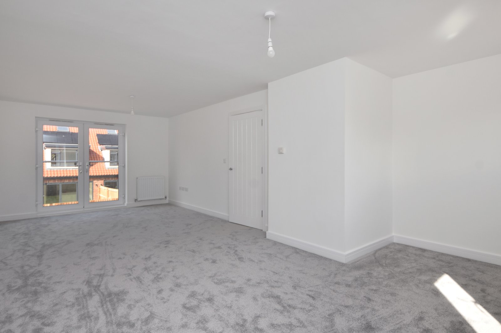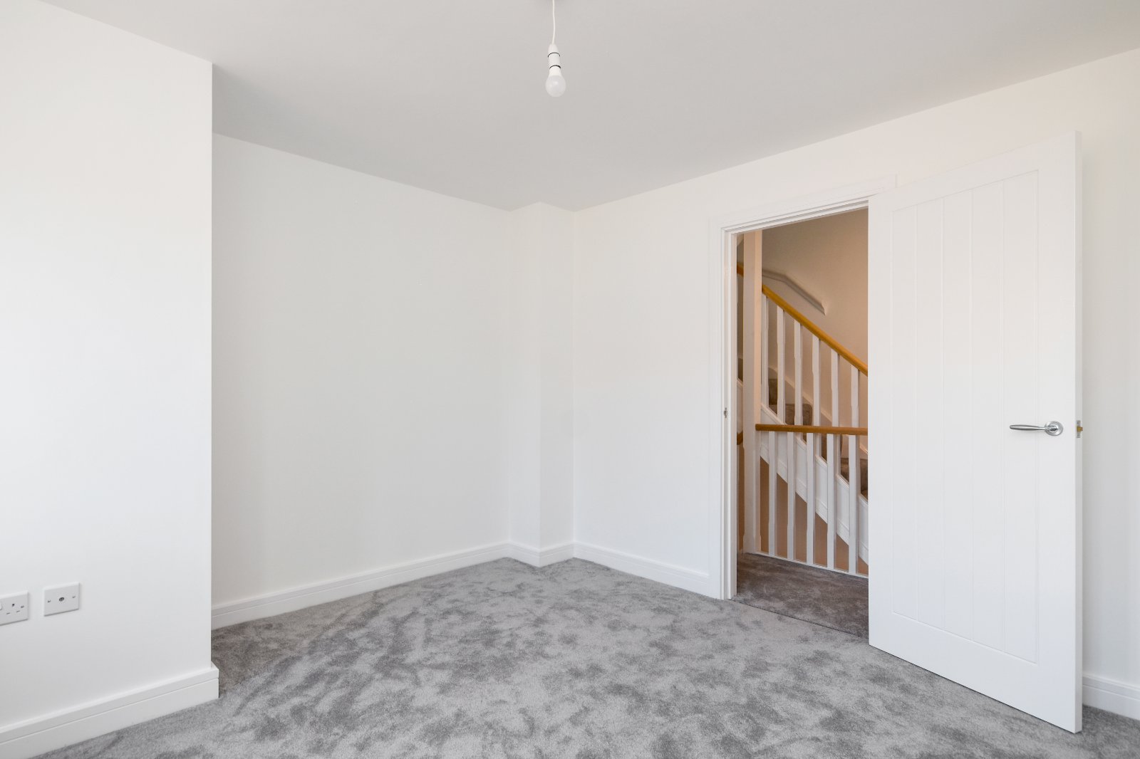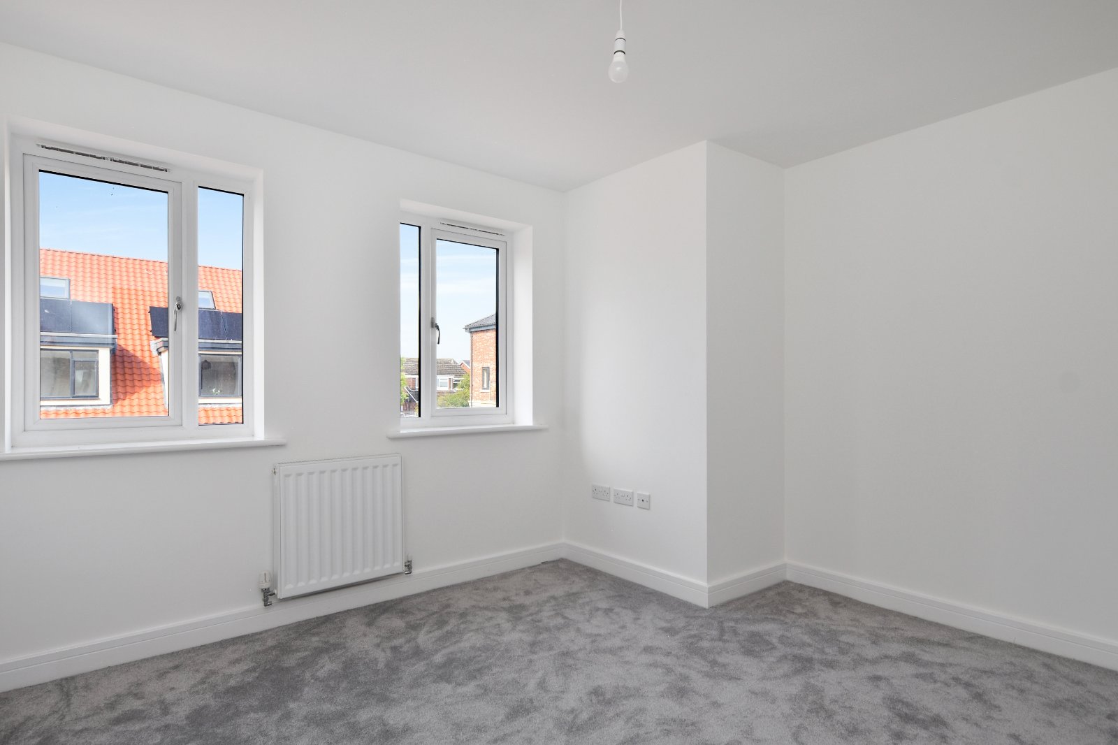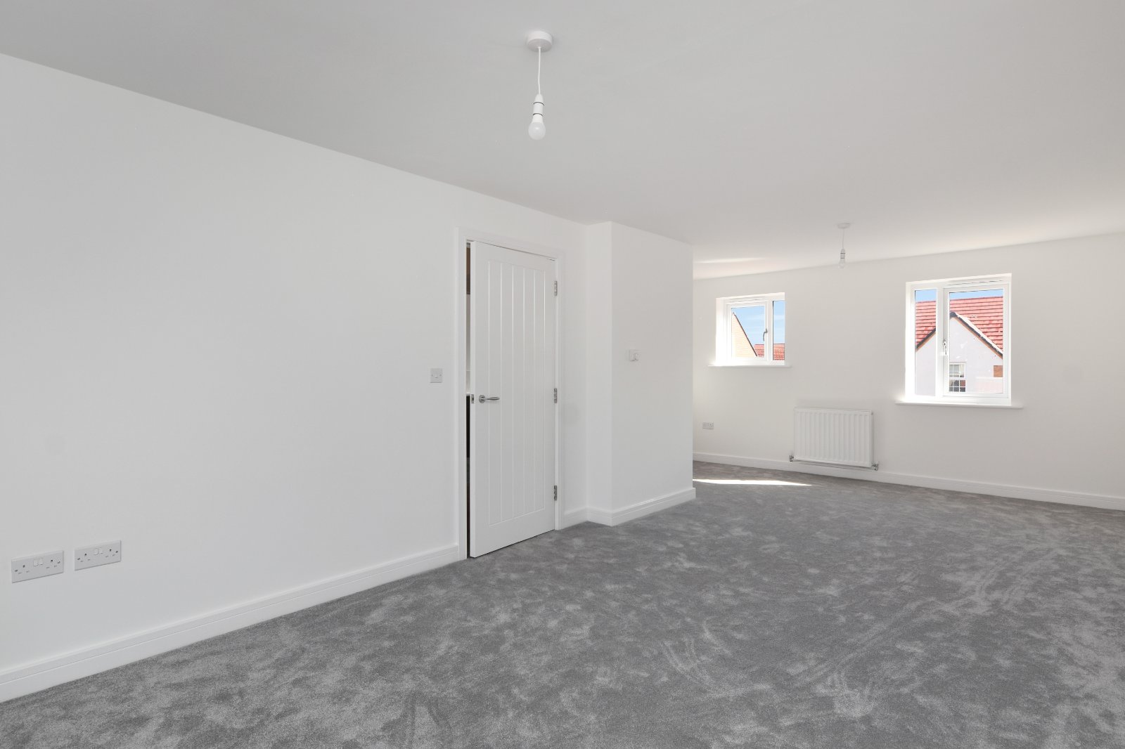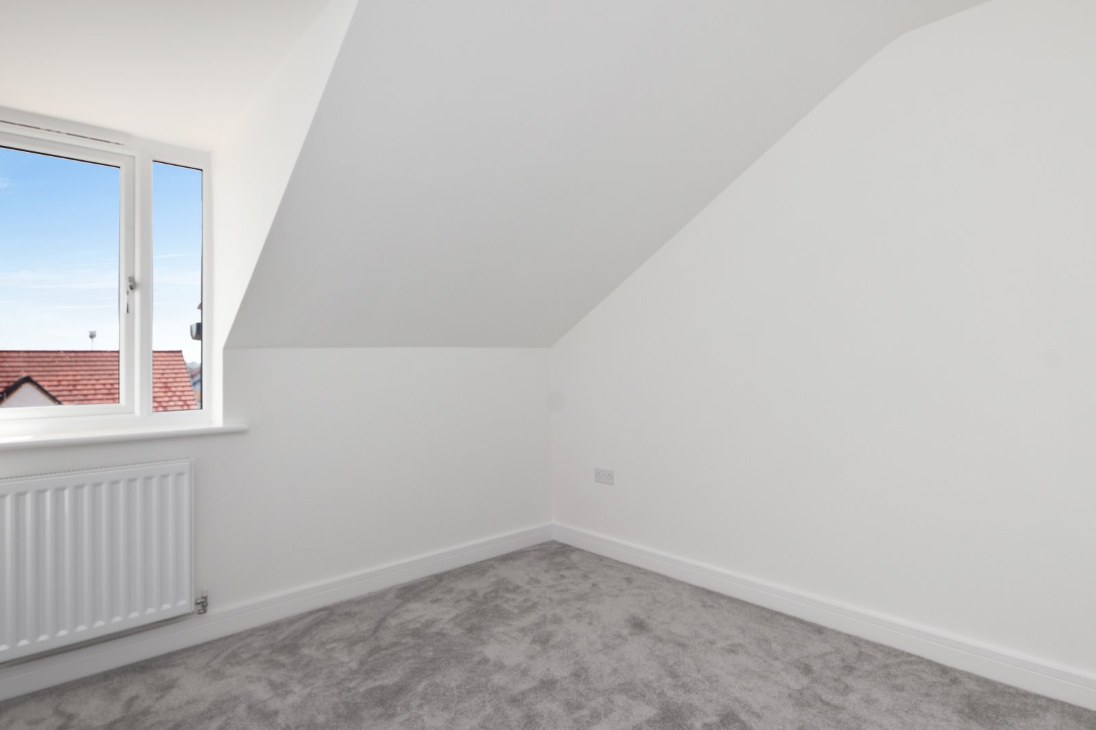 uPVC double glazed dormer-style window to front aspect. Finished in a fresh neutral palette with plush grey carpeting. Radiator. The room is available for a full range of bedroom furniture, and the layout allows flexibility for wardrobes etc.