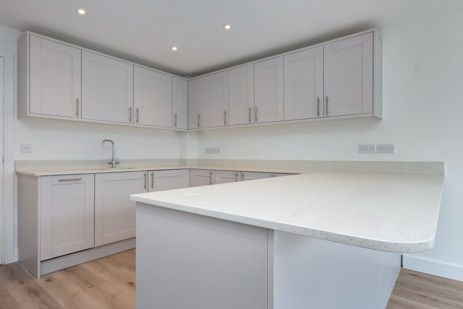 An extensive selection of eye-level and base units provides generous storage, while the Quartz worktops extend to form a convenient breakfast bar—perfect for casual meals or a relaxed morning coffee. The kitchen flows naturally into the dining and family area, creating a sociable, multi-purpose living space.