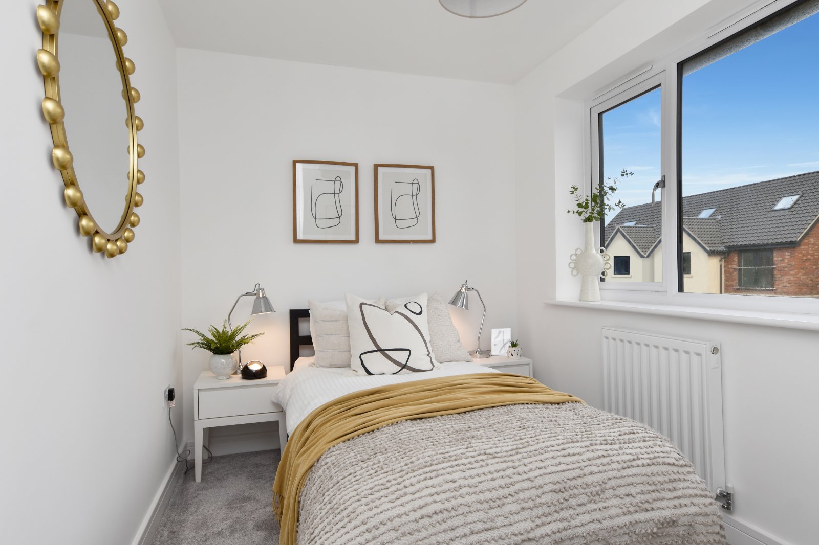 A well-proportioned double bedroom offers a good size uPVC double glazed window to the front aspect of the home. Radiator. Finished in neutral tones with a smooth plastered ceiling and plush grey carpeting. Its simple layout allows flexibility for wardrobes and storage solutions while maintaining a sense of space and comfort.