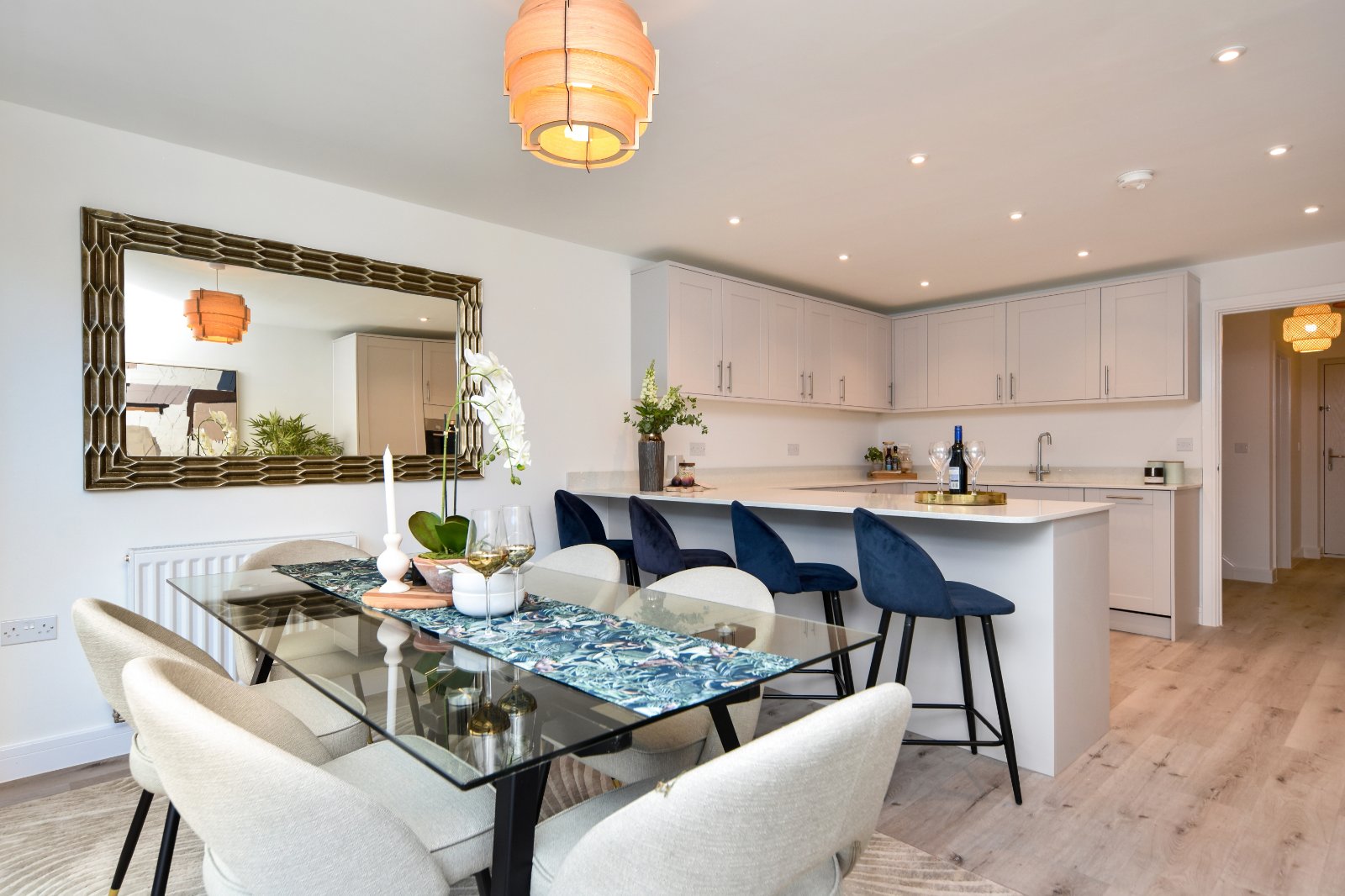 This beautifully planned Kitchen/Dining area offers a bright, open-plan layout—perfect for everyday living and entertaining. Finished to a high standard, the kitchen features timeless ‘Oxford Shaker’ cabinetry in Pebble Grey, paired with luxurious ‘Seattle Steel Sparkle effect' Quartz worktops and matching upstands. The worktop is inset with a recessed one-and-a-quarter stainless steel sink and modern chrome mixer tap. Concealed wall mounted 'E-TEC NXS' wall mounted boiler.