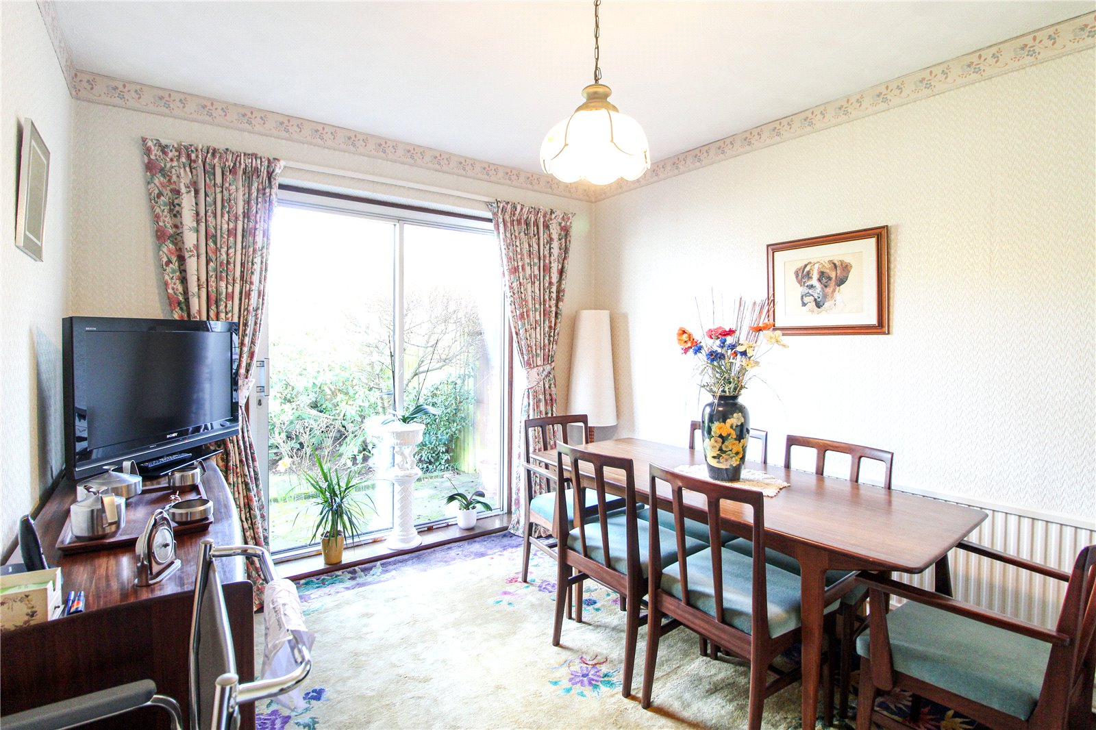 Could be used as a third bedroom or a dining room, sliding double glazed doors to rear aspect, carpet to floor, radiator, ceiling light.