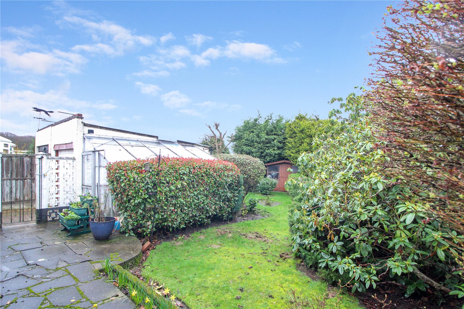 Good sized rear garden, mostly laid to lawn, access to garage, side access via gate, 2 x sheds