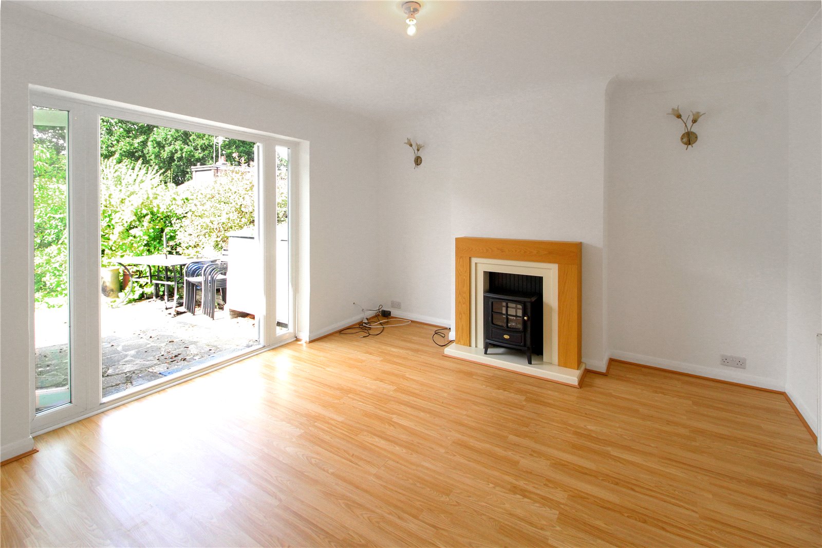 Upvc double glazed french doors with windows adjacent overlooking patio and rear garden. Wood effect laminate flooring. Smooth plastered walls and ceiling with coving. Feature wooden fireplace. TV aerial point.