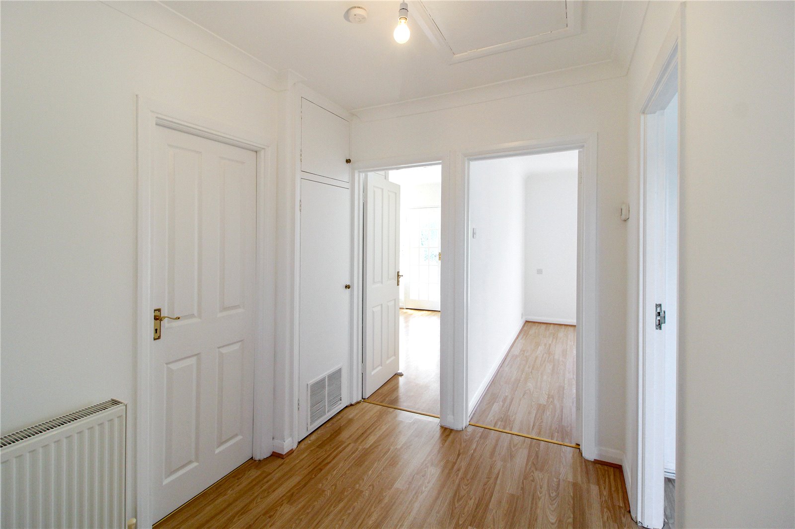 Panelled doors to all rooms. Entrance to roof space. Built-in cupboard housing meters and wall mounted boiler serving central heating and domestic hot water. Wood effect laminate flooring. Double radiator Panelled doors to all rooms.