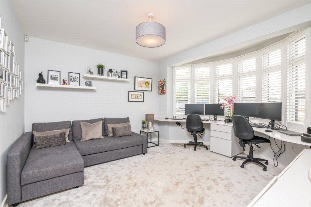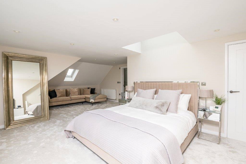 Narrowing to 12'4". Double glazed window to rear overlooking the garden and golf course, double glazed skylight with electric blind, 3 radiators, further double glazed skylight window to side, smooth plastered ceiling with downlighter.