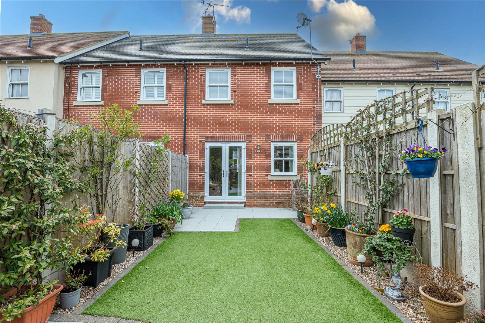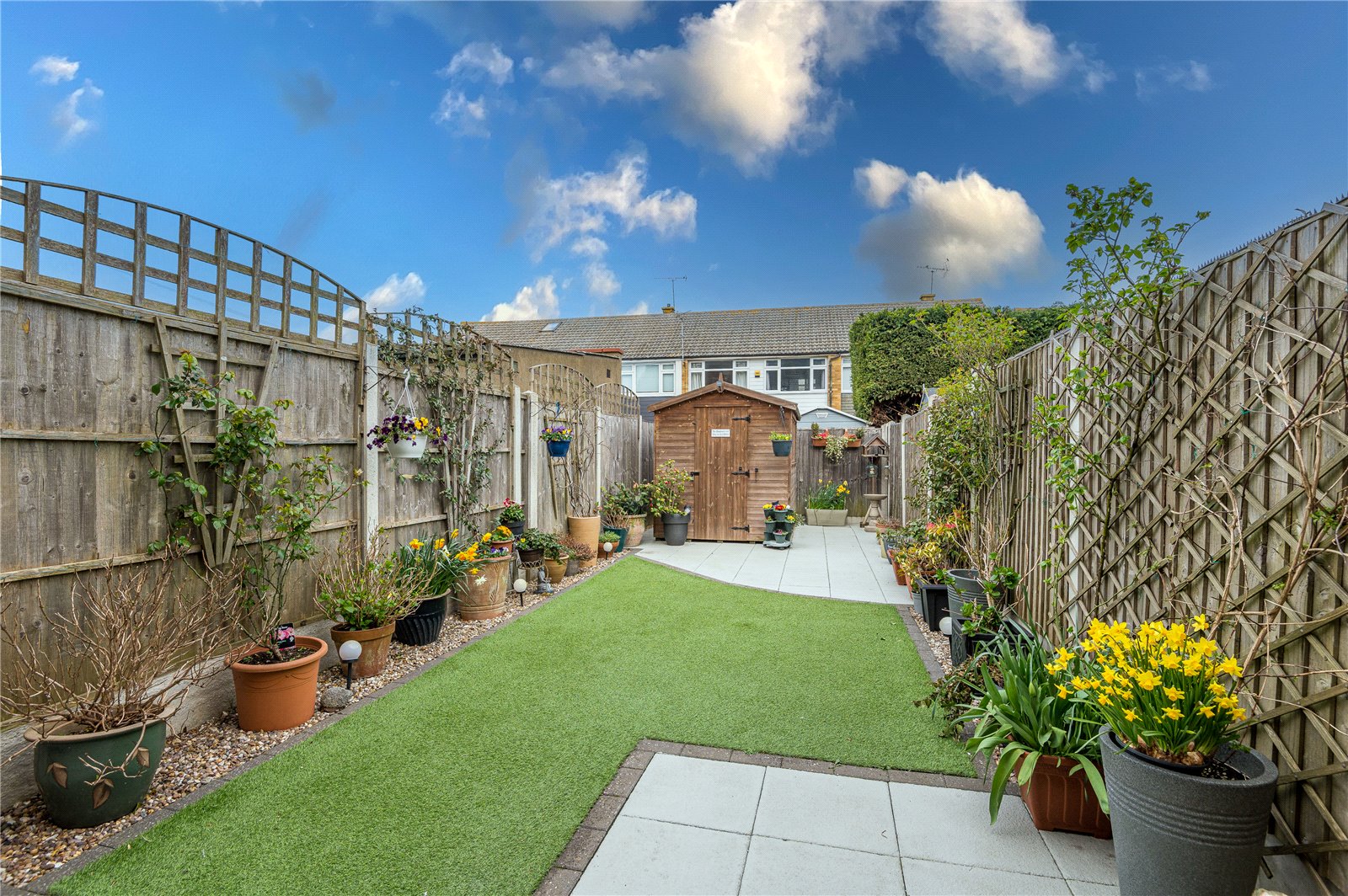 The front of the property is approached via a short footpath with planted boarder and artificial lawned area.