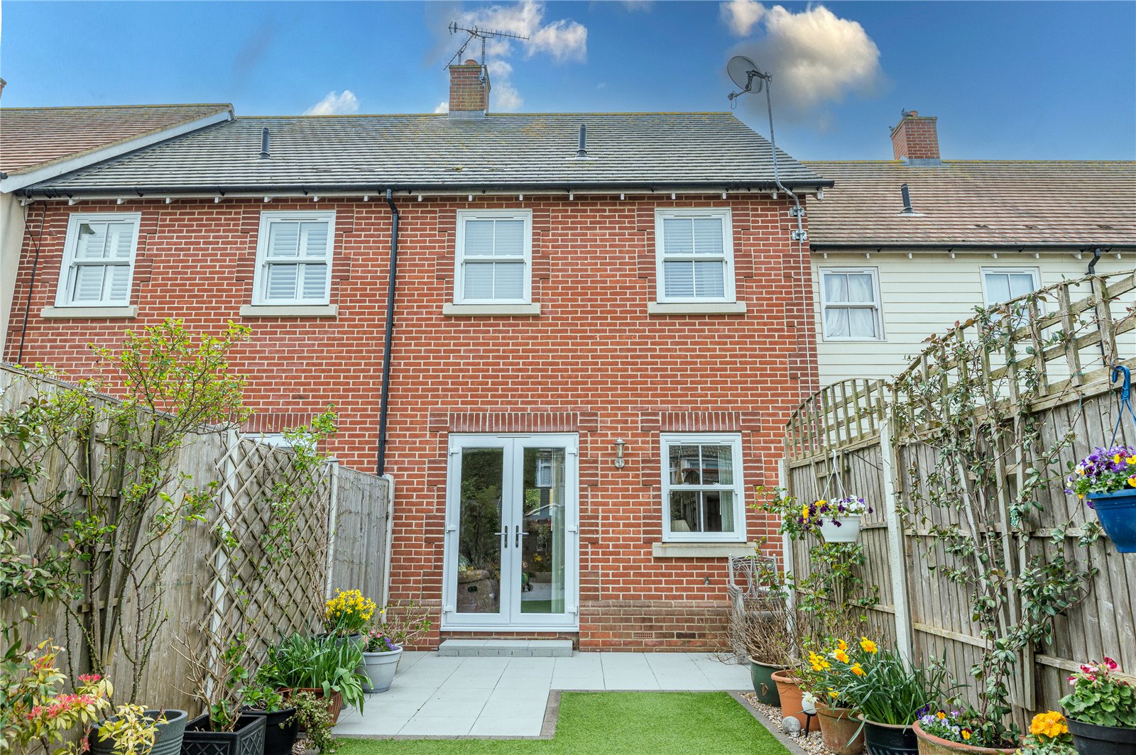 The rear garden has been beautifully landscaped in 'low maintenance' style and commences from the Lounge/Dining room with a coloured sandstone patio terrace with brick bordered edging. The majority of the garden is laid to quality artificial lawn with shingled planted side borders and a further large sun trap patio area to the rear of the garden, ideal for dining 'Al-Fresco' with hard standing for timber garden shed. External lighting. External water supply.