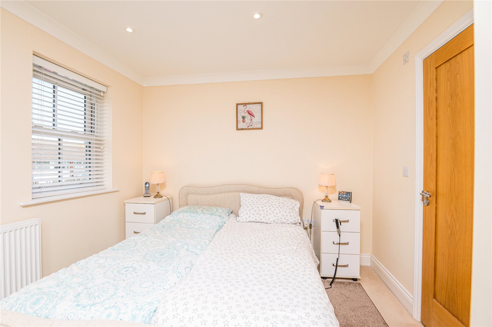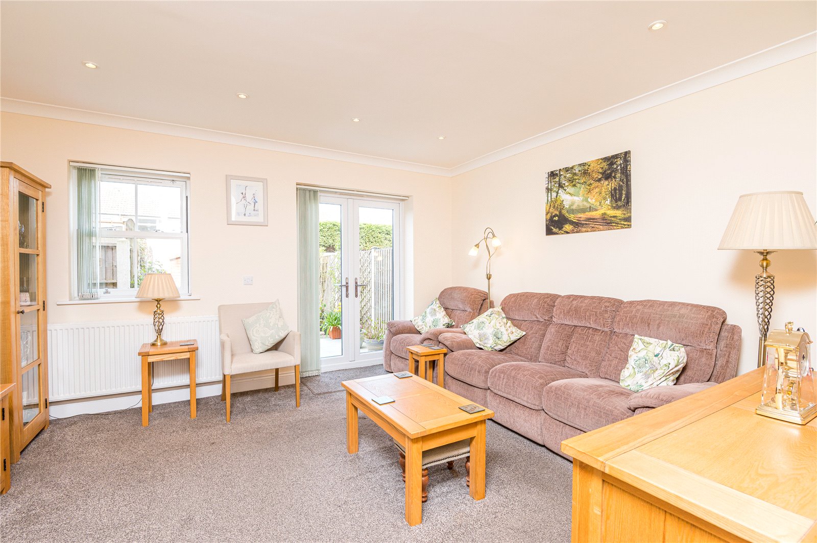 uPVC double glazed French doors give access to the landscaped rear garden. uPVC double glazed sash window to rear. Lipped skirting. Television aerial point. Access to understairs storage cupboard. Coved cornice to smooth plastered ceiling with recessed LED lighting.