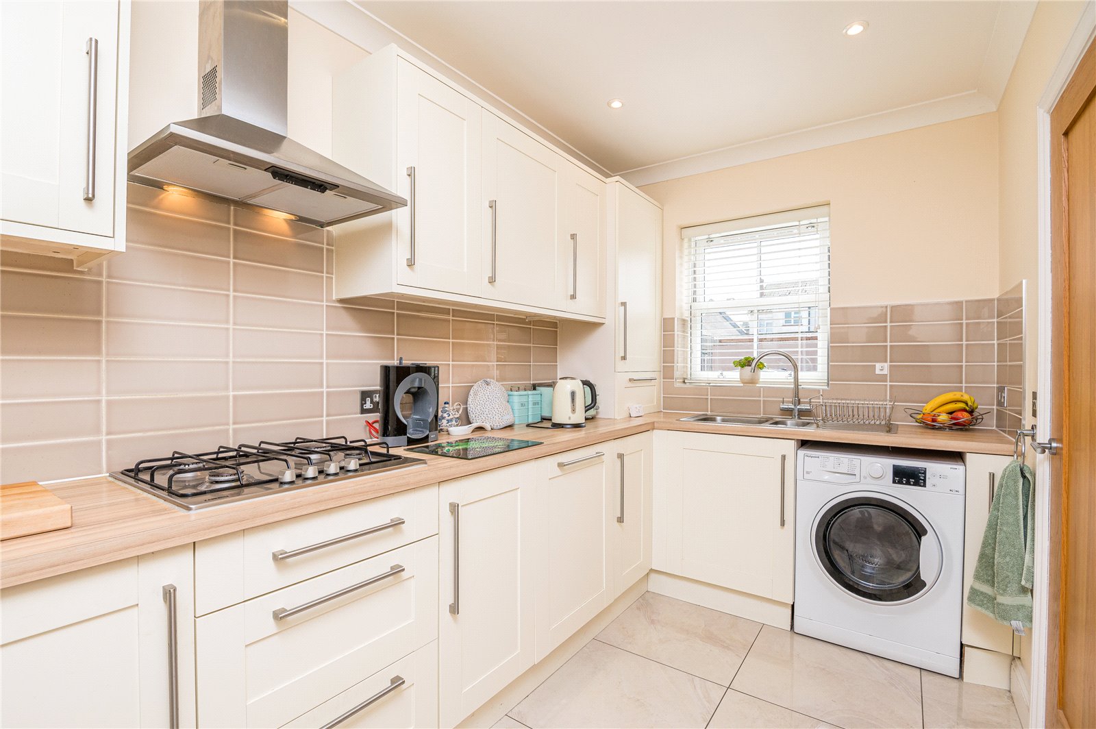 Double glazed multi-pane sash window to front. The Kitchen has been professional planned and fitted with a range of base and pelmeted eye level cabinets in cream with brushed steel fittings and squared edge working surfaces with gloss Metro tiled splashbacks and inset one and a quarter bowl stainless steel sink unit. The full range of integrated appliances include split level 'Zanussi' fan assisted electric oven with integrated microwave above, four ring gas hob, brushed steel extractor canopy, fridge/freezer, dishwasher and washer/dryer. Under unit lighting. Access to cupboard housing gas boiler serving domestic hot water and central heating system. Polished porcelain tiled floor. Coved cornice to smooth plastered ceiling with recessed LED lighting.